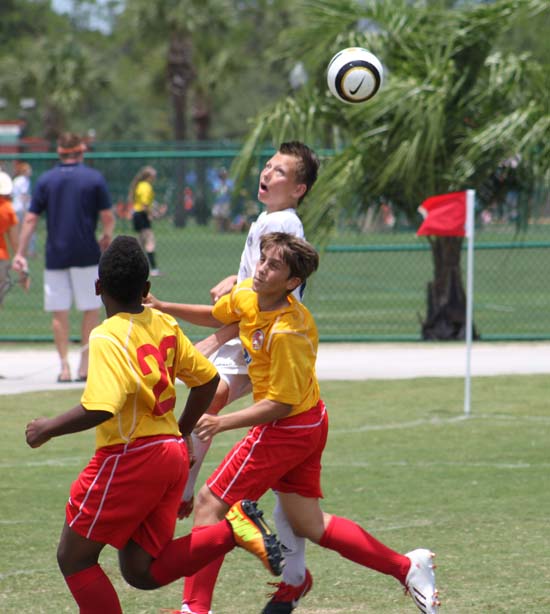 Wysoki Nick nie miał problemów z uderzeniem głoą tej piłki podczas finałowego meczu z Miami Squadra