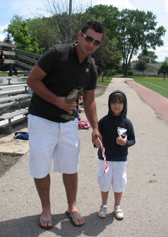 Sebastian Jarmuła z synkiem i statuetką za wygranie rywalizacji “króla strzelców”