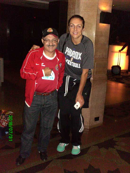 W ub. tygodniu w miał jednak problem. Komu kibicować w ostatnim finałowym spotkaniu o tytuł mistrza WNBA – czy Chicago  Sky, czy też Merkury Phoenix, gdzie gra także wiślaczka, w dodatku Polka  – Ewelina Kobryn. Wybrał jednak przyjezdny zespół,  o czym  świadczy zrobione po meczu zdjęcie z Eweliną, które zamieszczamy poniżej..