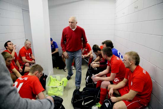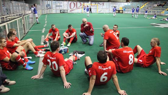 Paweł Bartusiak prowadzi odprawę w szatni (powyżej) i na boisku (poniżej)